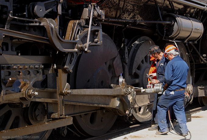 The grease gun used by the crew on 3751 was powered by compressed air from the locomotive. Compressed air is available on locomotives because of its use for actuating brakes for the train. August 26, 2002, 3:44 PM |