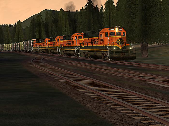 "Notch 8" is more than a luxury on BNSF 2098 as it climbs the grade on it's journey west near the Bison Siding at the end of a long day.